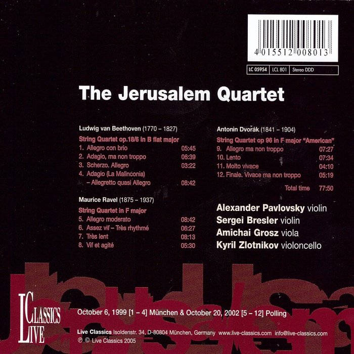 Beethoven, String Quartet op.18/6, Ravel, String Quartet*, Dvorak, String Quartet op.96*