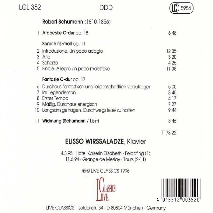 Schumann, Arabeske op.18*, Sonata op.11, Fantasy op.17, Schumann/Liszt, Widmung